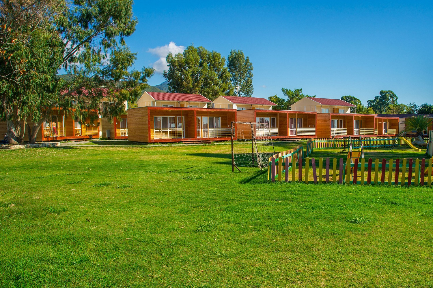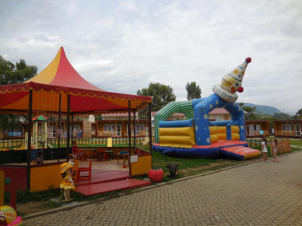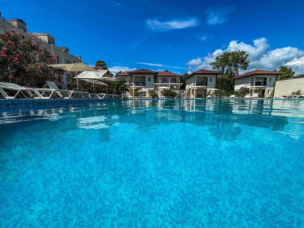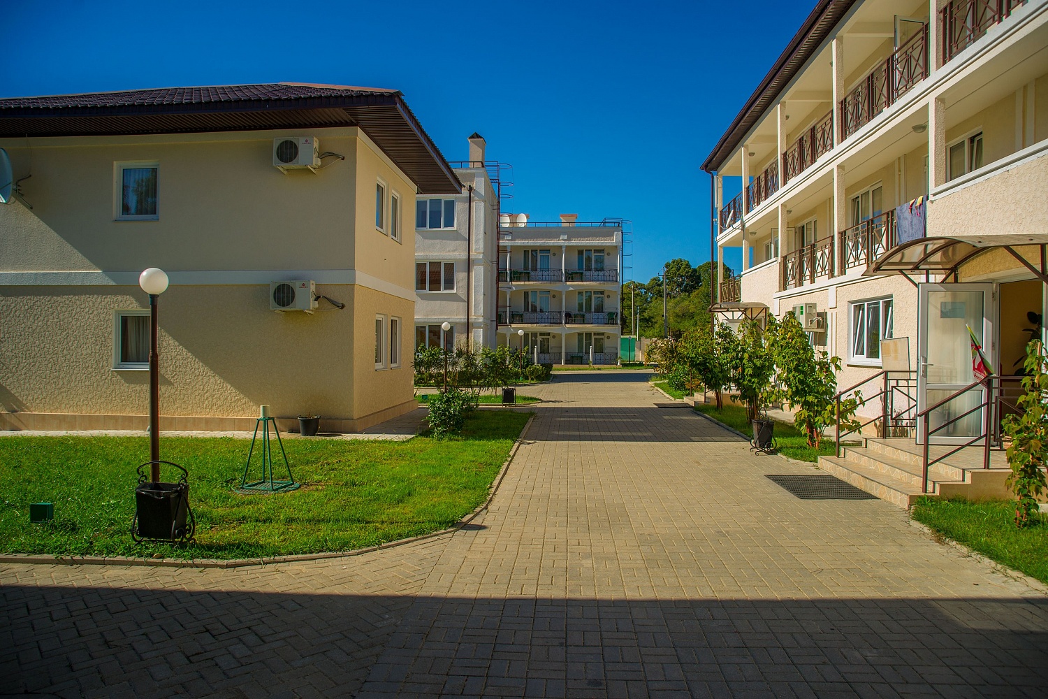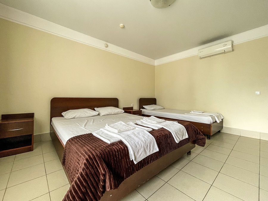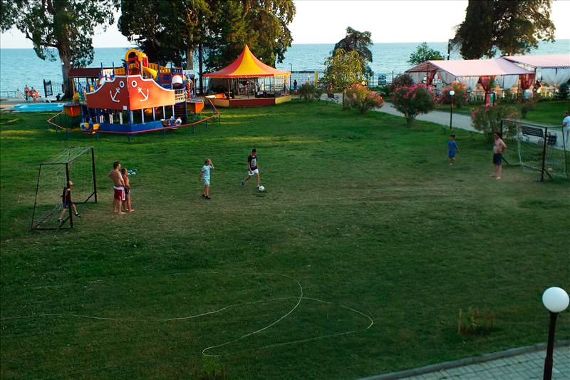 Территория огорожена и имеет площадь 2 гектара. Здесь предусмотрено два корпуса и два коттеджа, где есть 88 комфортабельных номеров. Кроме того, гостей порадует наличие крытого бассейна с целебной сероводородной водой, а также бесплатный Wi-Fi.